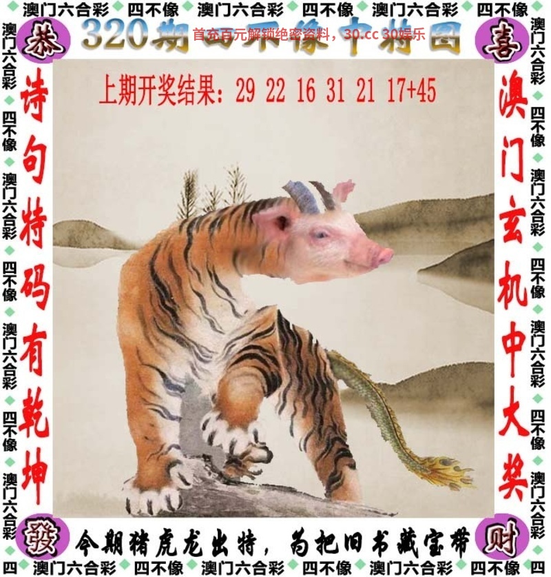 | 320期:今期猪虎龙出特,为把旧书藏宝带 ①杀:马鼠兔 ②图解特肖:猪虎龙蛇羊 ③合单+大数 |